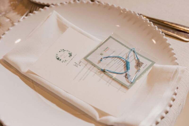 Gema y Alberto regalaron a los invitados de su boda nuestra pulsera del Árbol de la Vida, en homenaje a todos los donantes y personal implicado en el proceso de Donación y Trasplante.