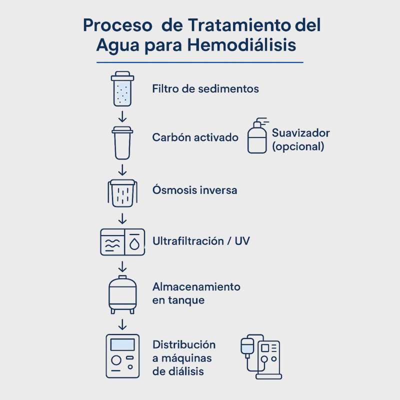 Calidad del agua y prevención de complicaciones: es importante que el agua utilizada en hemodiálisis sea tratada para eliminar contaminantes químicos y microbiológicos que pueden causar problemas de salud a corto/largo plazo, como bacterias, metales pesados, endotoxinas, sales y contaminantes químicos.