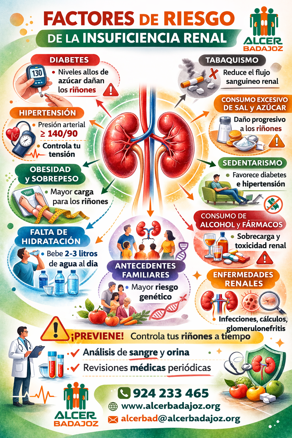 Independiente de la causa de base y los otros factores fisiopatológicos involucrados, el manejo preventivo de la ERC ya instalada está enfocado en retardar o detener su tasa de progresión y prevenir los eventos cardiovasculares.